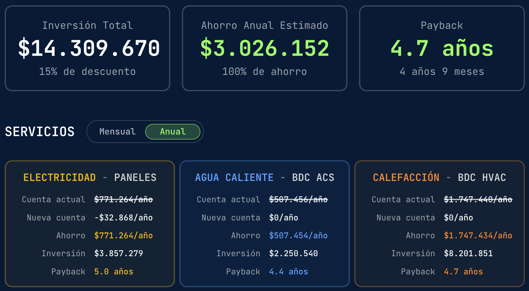 Te acompañamos en todo el proceso, evaluando tu proyecto y encargándonos del monitoreo. Siempre tendrás soporte personalizado y una garantía general por 3 años
